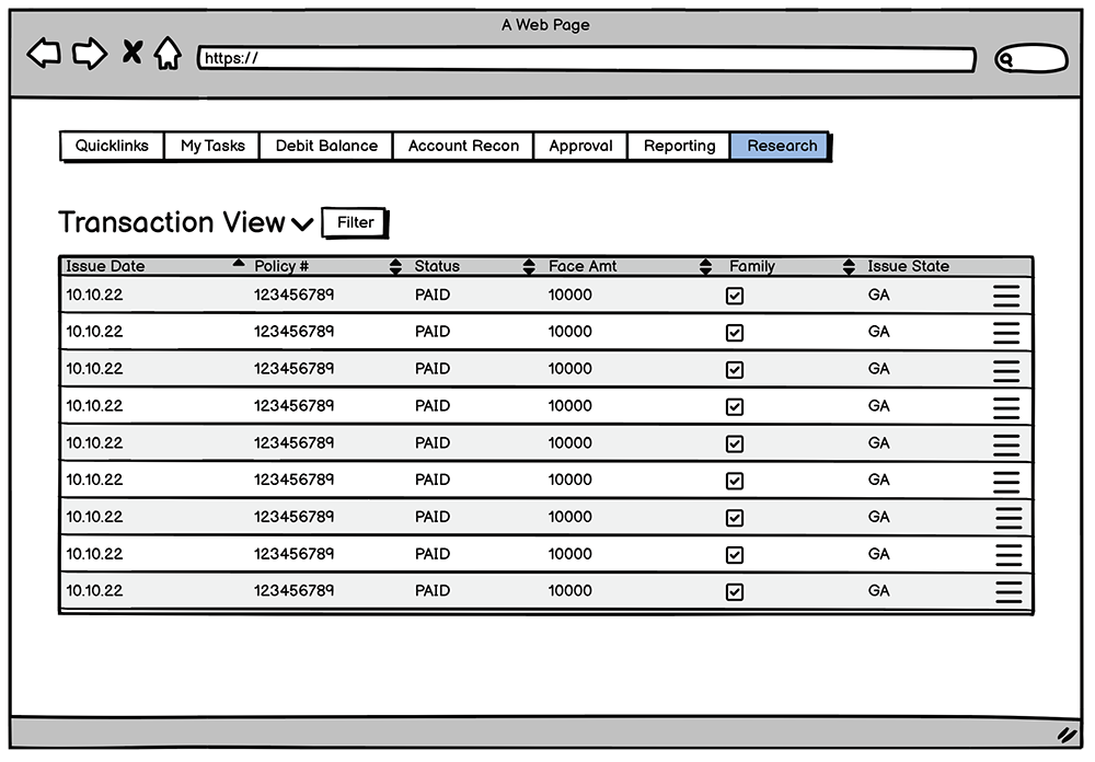 Client: Large life insurance organization Role: UX Designer Timeframe: 9 months Team: UX (1), Business Analyst (2), Developers (4), Product Owner (1), Data Engineers (2), Scrum Master (1)
